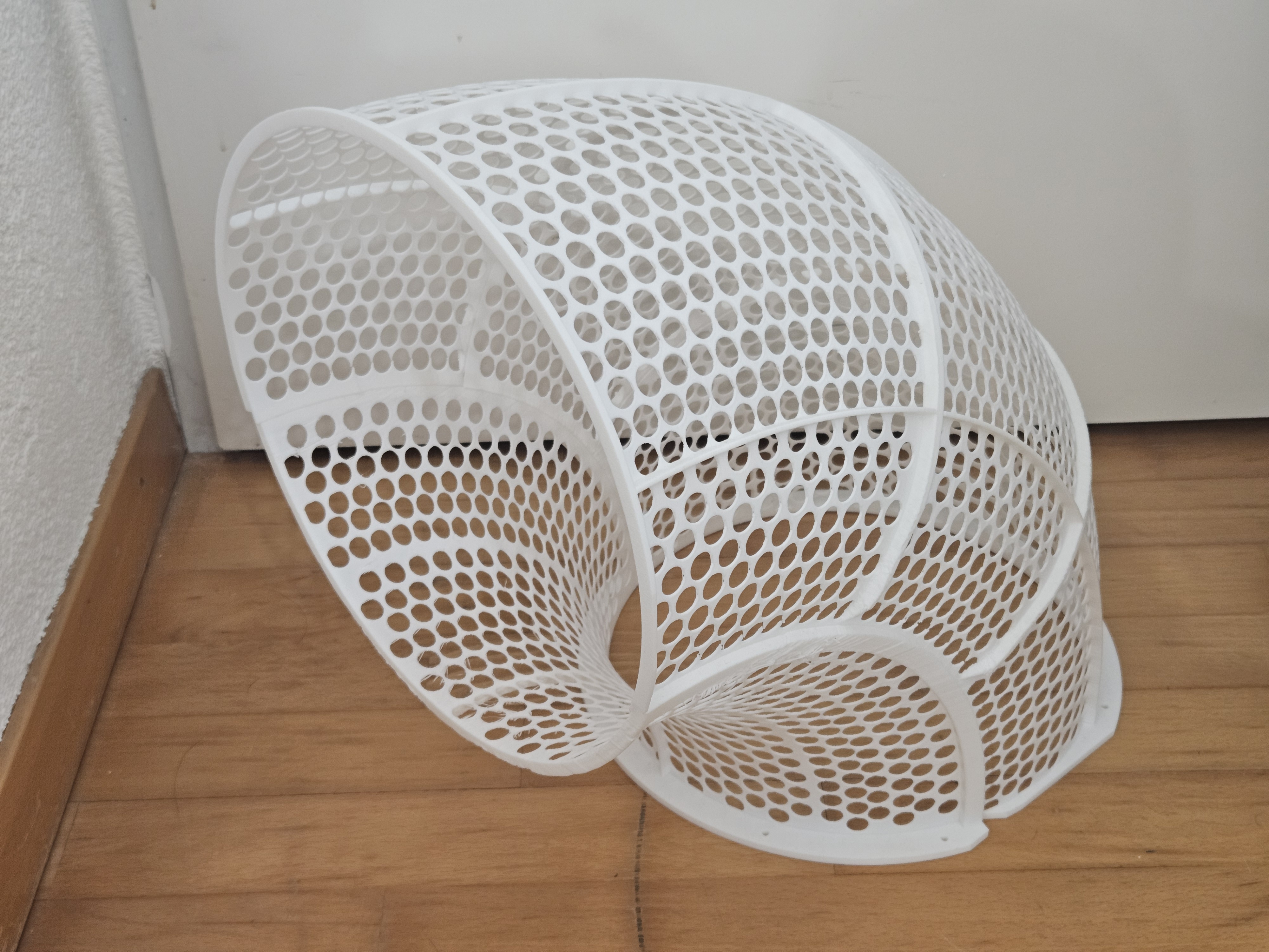 This custom 3D printed elbow piece lets air flow through it with little resistance while silencing fan noise. The elbow piece can be wrapped with porous absorbents like mineral wool to absorb sound, and then be enclosed with e.g. a plastic foil to ensure that are doesn't leak into or out of the ventilation system.